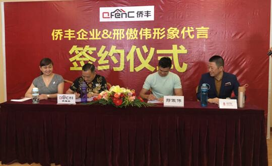 据了解,侨丰企业是一家具有二十多年的发展历史,集内外贸、电商公司,工贸一体的集团公司,拥有外观和实用新型专利80余项,公司非常注重产品开发和品牌运营,2006年就签约著名影星张凯丽,品牌快速发展,谈到这次选择奥运冠军邢傲伟出任品牌代言人时,北京中视旭阳广告公司总经理张立成认为奥运冠军代言侨丰企业是基于品牌发展的综合考量,特别是全民健身运动的蓬勃发展,消费者对健康生活的需求不断提高,侨丰企业希望通过奥运冠军邢傲伟的健康、青春、活力的时尚形象,借助奥运冠军所赋予的独特的冠军文化,将会帮助侨丰企业打造冠军品牌,开发更多适合健康生活的冠军产品。