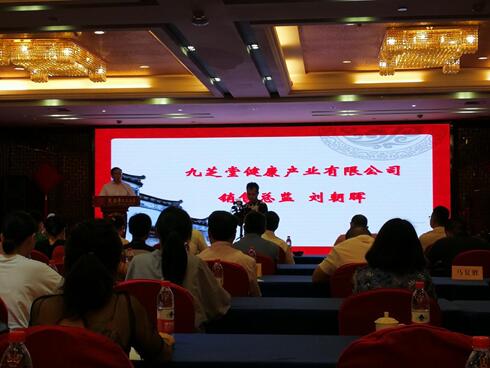 签约仪式上,九芝堂健康产业有限公司销售总监刘朝晖作为老字号企业代表致辞,并详细介绍九芝堂。