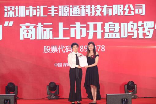 敲锣仪式在深圳华侨城洲际酒店举行,首先由深圳汇丰源通科技有限公司总经理马淑云致欢迎辞,并宣布“亿购”商标上市开盘敲锣仪式正式开始。她在致辞中说,在香港国际知识产权交易中心上市开盘的“亿购”商标,将作为公司的无形资产,在资本市场开始交易;公司在移动通讯领域、智能家居领域和健康领域将会不断地扩展,将以高产能、高受益回馈投资人。