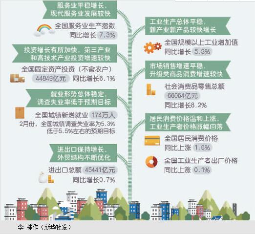 二是结构优化态势持续。1—2月份,全国规模以上工业增加值增速如果剔除春节因素影响,实际增长比去年12月份略有加快;工业内部的战略性新兴产业增加值增长速度10.1%;私营企业增长8.3%,比去年12月份加快0.5个百分点。同时,现代服务业增长势头较好,比如信息传输、软件和信息技术服务业保持26.5%的较高增速。