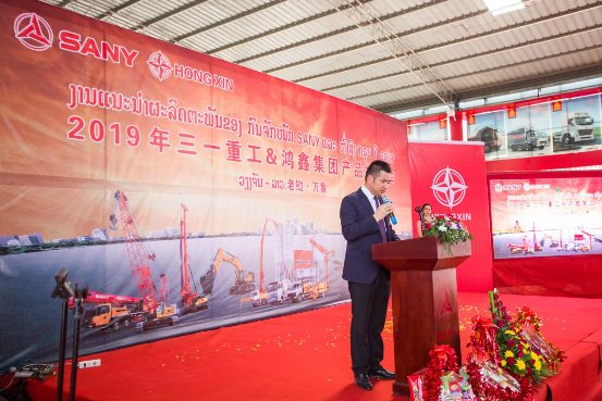 三一重工东南亚大区笪睿总经理致辞,他指出,三一重工是中国最大工程机械制造企业,近年来不断改革创新,混凝土设备销量全球第一,挖机设备销量连续 8 年全国第一。作为中国乃至全球工程机械制造业的领跑者,三一重工积极响应国家一带一路的号召,积极投入沿线国家的基础建设发展。近年来老挝改革开放,大力发展基础建设、水利工程,工程机械设备需求剧增。鸿鑫公司已成为我司在老挝唯一的正式授权代理商,希望鸿鑫公司充分发挥在老挝的资源优势,大力推广三一品牌形象,树立工程机械行业标杆。感谢老挝所有客户长期以来对三一的信任和支持,三一携手鸿鑫积极为所有客户提供优质的服务,为所有的客户解除后顾之忧。相信凭借精诚合作、互惠共赢的理念,定会创造出新的奇迹和未来。