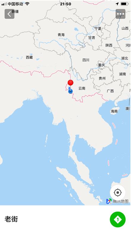 果敢首府老街市。地处中东部宽谷丘陵盆地老街坝,与中国云南镇康南伞镇连为一体。其中南伞河,每逢夏秋雨季,会流入老街,再潜入地下。其地理座标:北纬23°41′42'',东经98°45′37″;海拔980米。历史上这里只有零星村落和一个规模不大的农贸集市。现已经成为政治、经济、文化中心。