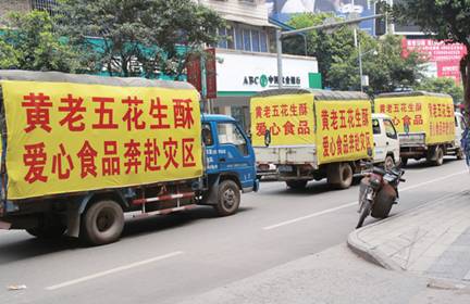 例如,在成都春熙路步行街采访的一位行人陈阿姨说:“黄老五花生酥很好吃,企业的老板我们也都知道,人很忠厚,这个公司从不生产伪劣的产品。”还有一位热心群众蒋女士表示:“黄老五公司是个有社会责任感的公司,在2013年4月雅安地震中黄老五公司不仅派出联络员进入灾区,并立刻启动爱心捐赠程序,第一时间为灾区捐赠了价值100万的黄老五食品。黄老五公司是一个具有爱心和社会责任感的公司。”