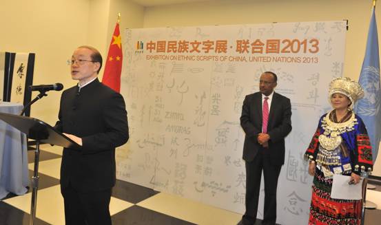 联合国主管联大会议及其他会议的副秘书长盖图出席开幕式并致辞,中国常驻联合国代表团刘洁一大使亲自到场祝贺并致辞。盖图和刘洁一大使在致辞中都高度评价了此次展览活动,盖图特别赞扬了中国政府在保护和发展中国少数民族文化方面的努力和成绩,感谢中国政府在保护和发展多元文化方面为全世界作出的卓越贡献;刘洁一大使在现场还向来宾全面介绍了十八届三中全会的情况和精神。