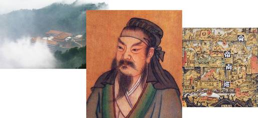 图二、上古舜帝南巡 ——屈原、司马迁、黄伟宗、李俊康、曾强、陈侃言、彭志创、吴承华等历代专家学者的舜帝文化学术研究成果。