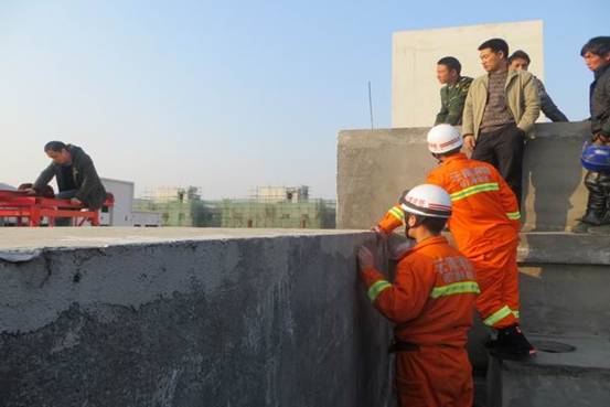 时间就是生命!根据现场情况,指挥员根据现场情况立即下达救援命令:第一组协助现场民警设置警戒带,并疏散围观人员;第二组跟随指挥员上前劝说并营救跳塔男子。命令下达后,救援行动紧张有序的展开。当大队救援人员即将靠近男子时,该男子突然情绪失控,大声斥责,拒绝接受救援人员靠近,为稳定其情绪救援人员只好停止靠近。“你在上面坐着也不是办法,不仅拿不到钱,而且还会有生命危险,你不为你自己想,也要为你的家人想想……”指挥员一番苦口婆心的劝说男子仍是无动于衷。时间一分一秒的过去,在场所有人的注意力都集中到塔吊上。17时28分,公司负责人也赶到了现场,经过劝说和协商,公司负责人答应立即为工人支付拖欠工资,该男子也放弃了轻生念头,答应立即从塔吊上下来。随即,两名救援人员立即返回塔底接应男子,3分钟后男子安全“着陆”。