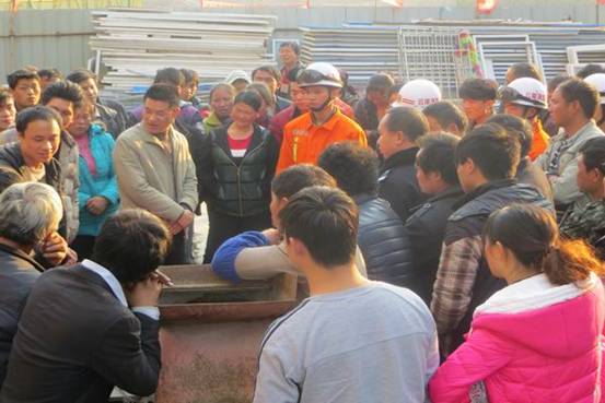 1月23日下午16时38分,镇雄大队接到群众求助电话称:位于镇雄县乌峰镇云南建工六公司建筑工地上,一包工头讨薪未果爬上几十米高的塔吊欲跳塔轻生,随时有生命危险。接到报警后,大队迅速出动1车8人赶往现场实施营救。