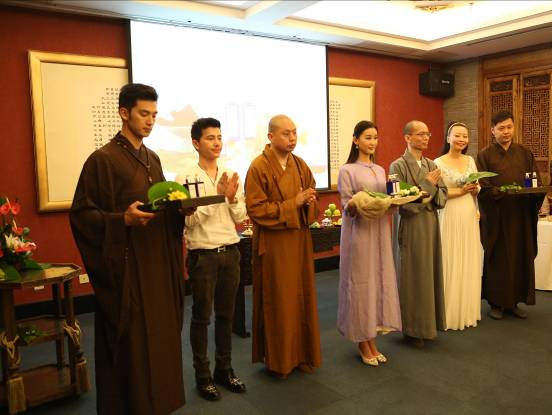 发布会现场更似佛门道场,沐手焚香、抄经论道、钟磬悠扬。宗舜法师、延参法师,《男士健康》杂志主编周松先生、佛教音乐人敬善媛均到场倾情助阵。