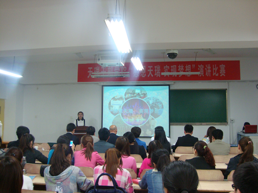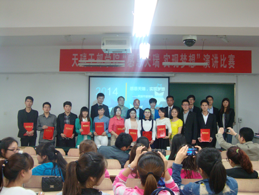 4月24日晚,天瑞干部学院“感恩天瑞、实现梦想”演讲比赛在洛阳理工学院西区举行。洛阳理工学院经管系党总支副书记张松兰,集团人力资源部部长宗永立、副部长杨太铭、韩行军等出席了演讲比赛。