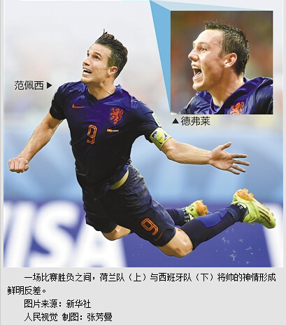 本场比赛的最佳球员范佩西在赛后说,“通常情况下打进两三个球以后,大部分队伍就会打得保守起来,这是一种对机会的巨大浪费,我们依然选择创造更多的进球机会。在我看来,我们完全可以进6个、7个、8个。”言下之意,荷兰队这场比赛踢得绝不保守,而西班牙队的后防线简直不堪一击。