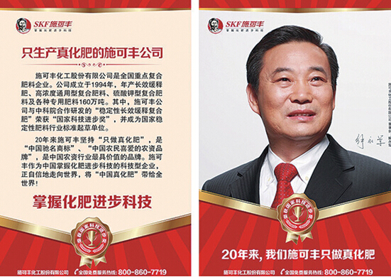 解永军:随着市场经济的发展,品牌对于一个企业来说越来越重要。作为施可丰人,对待品牌就像对待自己的生命一样去重视。再好的品牌也要靠产品和科研作为基础,这是我们一直努力的工作。其次在宣传推广方面,我们不断地进行深入的工作。我们深入农村、深入种田大户做科研服务和宣传推广;我们统一了样板店、专卖店,形成了在全国只要看到是施可丰的店就知道是施可丰真化肥的专卖店。