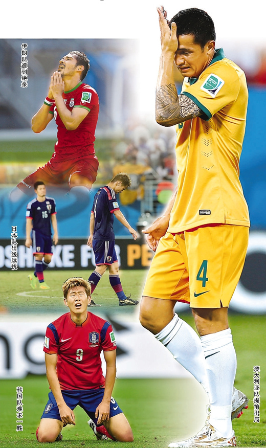 (本报记者 陈晨曦 颜欢)当地时间6月23日,在韩国队以2∶4首次在世界杯上输给非洲球队之后,亚洲球队自1998年世界杯以来的最差战绩“盖棺论定”。4支亚洲球队8次亮相未尝一胜,只有尴尬的3平5负。亚洲4队所处境遇自然也不乐观:澳大利亚队两战皆负,已经提前一轮无缘16强;韩国、日本、伊朗三队若想出线,除了在最后一轮必须拼下对手,还要看“别人脸色”。