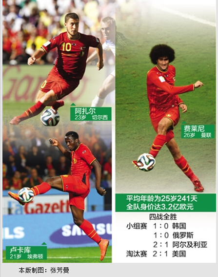 “如果我们能进入1/4决赛或者半决赛,那将会是一项卓越的成就。”比利时队10号球员阿扎尔在世界杯前的憧憬已经实现了一半。巴西当地时间7月1日晚,萨尔瓦多新水源球场,“欧洲红魔”和美国队的比赛被拖入加时,这已是8场巴西世界杯1/8决赛的第五个加时较量。最终,替补出场的“小魔兽”卢卡库一传一射,比利时队以2∶1战胜对手,涉险闯入八强。在1986年墨西哥世界杯上获得第四名之后,这支球队终于又在世界杯淘汰赛中感受到了赢球的喜悦。