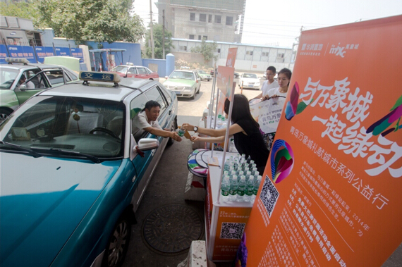 出租车是一个城市的窗口和名片,尤其是青岛这样一个旅游城市,外地游客对城市第一印象的好坏,首先取决于出租车师傅们。当下,酷暑难挡,人人避之不及,而广大出租车驾驶员冒着酷暑,以饱满的精神、文明的经营,为乘客提供着优质的客运服务,为城市塑造着良好的形象。关爱的哥,与城市一起绿动。为此,青岛万象城携手怡宝,推出【“与万象城一起绿动”的哥送水关爱进行时】活动,为盛夏中忙碌于出行的的哥、的姐们送上解渴的饮品和清凉的问候。