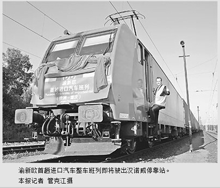 重庆市外经贸委主任徐强向本报记者表示,重庆作为中国西部首个整车进口口岸,正积极打造西欧进口汽车集散地。渝新欧铁路和重庆的区位优势,也将为欧洲品牌汽车进入中国中西部地区市场提供机遇。汽车整车和零部件通过渝新欧铁路进入中西部,对推动中西部汽车产业结构转型升级具有推动作用。目前,我们正在积极寻找货源突破口,充分挖掘这条铁路的运力。