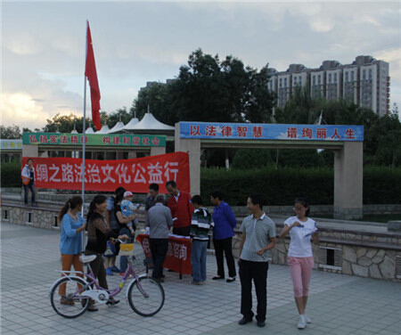 抵达中卫市时,已是傍晚了,奔波了一天的团队本打算直奔住处,尽早休息。可是,当经过中卫市一广场时,被“弘扬法治文化、践行法治理念”的法治宣传标语所吸引,他们受到鼓励,瞬间忘记了周身的疲惫,摆起咨询点,就开始了中卫的法律公益活动。广场前,王浩公律师驻足望着头顶的宣传标语,欣慰地说:“如果电视剧、电影、书法艺术、横幅标语等人们生活中处处可见的媒体,都能向人们展示法治的魅力和重要性,那么法治理念必定会深入人心,人们法律意识的提高也将指日可待。”