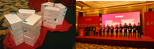 记者经多方联系,辗转联系到发奖品的这家公司,是深圳市快易典教育科技有限公司,在河南安阳市华强建国酒店举行其第23届首届全国代理商会,令人眼热的一幕是,会场舞台中人手一台的iPhone 6。