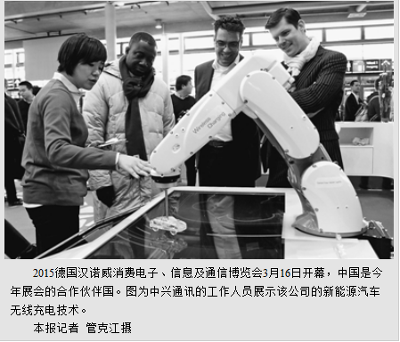 大数据、云计算、物联网、智能制造、社交网络……为期5天的2015汉诺威消费电子、信息及通信博览会3月16日开幕。全球3300多家企业竞相展示在数字经济方面的新思路、新技术、新产品。作为合作伙伴国,中国有600多家企业参展。这也是该博览会历史上对一个国家产业的最大规模展示。《欧洲新闻网》感叹说,中国已经登上了数字经济的中心舞台,凸显欧洲期待同中国加强合作的愿望。