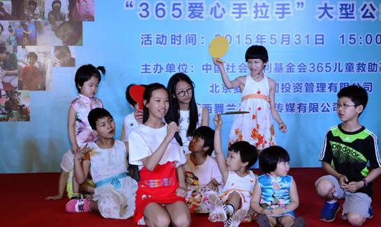 5月31日下午3点,由中国社会福利基金会365儿童救助基金、北京麦时鼎润投资管理有限公司联合发起,阳光少年活动组委会鼎力支持的“365爱心手拉手”公益活动在北京新年华购物中心拉开帷幕。央视著名主持人韩乔生、北京电视台主持人高燕、香港著名演员翁虹、歌手含笑、歌手刘坤山、足球运动员高雷雷、演员刘爽、爱心姐姐付羽迪、北京麦时鼎润投资管理有限公司董事长于建伟女士、阳光少年活动组委会主任李松遥女士等现场助阵奉献爱心。