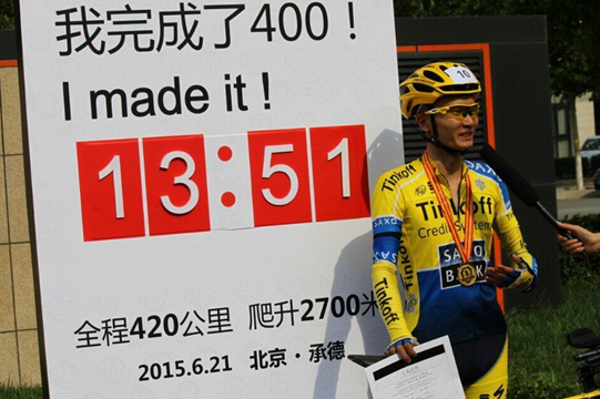 此次活动由北京英仕博体育公司主办,康比特做为战略合作伙伴对活动给予了大力支持,活动报名100人,最终86人在规定的22小时内完成420公里的骑行。
