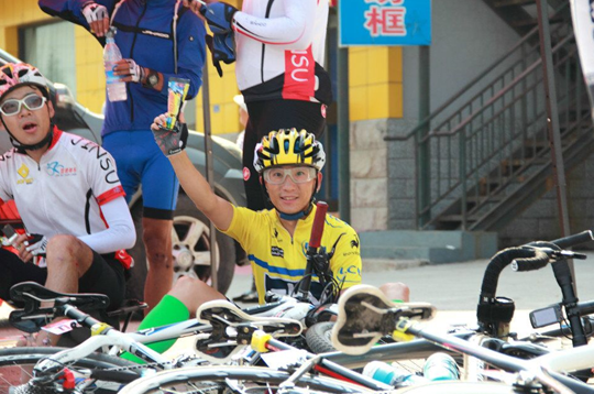 开赛后13小时51分,10号车手源源单飞300多KM率先到达终点