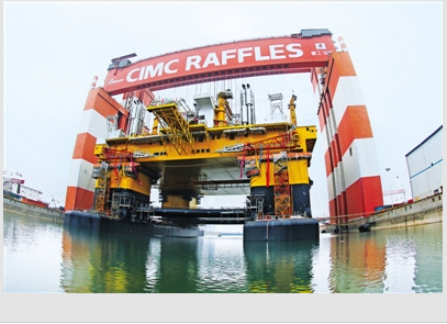 6月25日,第七代超深水半潜式深水平台“Frigstad Deepwater Rig Alfa”在位于山东烟台的中集来福士建造基地合龙。这一平台是烟台中集来福士海洋工程有限公司为挪威一家公司建造的。平台最大作业水深3658米,是当前全球最大作业水深,其最大钻井深度超过1.5万米,超过此前世界同类产品最大钻井深度。这意味着中国建造的半潜式钻井平台走向深海。图为钻井平台合龙现场。