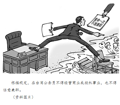 每年11月开始,近6万名台湾公务人员都要集体做一件事——申报个人财产。20多年前,台湾当局出于端正政风,确立公职人员清廉行为的考虑,公布实施了“公职人员财产申报法”,此后经过不断修订完善,形成了包括“公职人员利益冲突回避法”、“政治献金法”等在内的一整套“阳光法案”,对维护岛内公务员廉洁奉公发挥了重要的引导作用。但法律网络并非牢不可破,仍有一些空子可钻。对于游走于灰色地带的违法兼职现象,当局曾经长期睁只眼闭只眼。