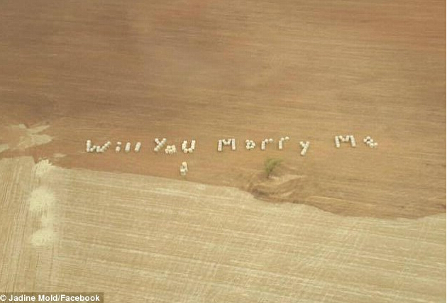 澳女子摩德近日被男友坎普撺掇登上了一架直升机。当她看到男友在农场上用干草垛精心布置的“嫁给我好吗”字样时,被感动地热泪盈眶,当即同意求婚。