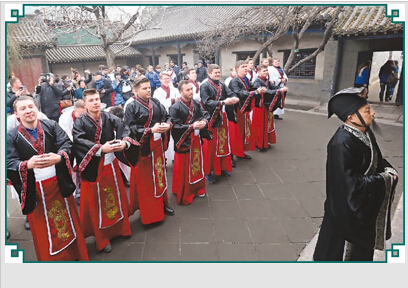 12月14日,俄罗斯青年代表团在孟子故里山东邹城市参观访问,87名俄罗斯青年在孟府身着中国古代服饰,参加中国古代成人礼仪式,亲身体验中国传统文化的魅力。