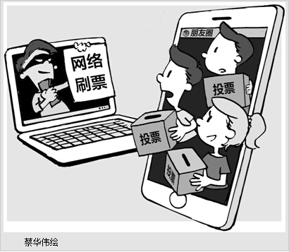 令人担忧的是,微信投票、网络刷票,校园生态圈是重灾区。南京中山小学校长助理李老师说,“学校用网络投票来总结、评比,有效、省事,无可厚非。但太多了,也就成了负担。而且,因为这些票选的后面是奖励、奖状,连着各种利益,容易滋生如拉票、淘宝买票之类的作弊手段。”