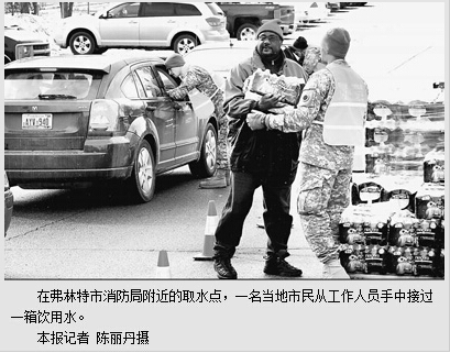 去年10月,弗林特市决定重新通过底特律购水,但受损水管并没有被更换,铅含量仍然超标。眼下,人们唯一可以放心饮用的只有瓶装水。