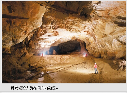 中国和法国的科考专家近日围绕广西河池市东兰县的地质资源开展了首次联合科考活动,探测地下洞穴长度达16.5公里,发现一座深度超过400米的天坑,为国内罕见。