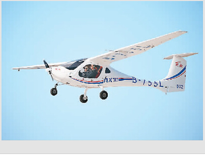 图为锐翔RX1E电动双座轻型运动类飞机在沈阳法库财湖机场上空飞行(资料照片)。