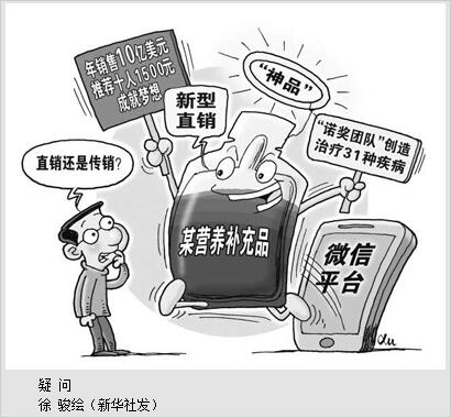 而更为严重的乱象,已经超出了消费领域之外。为了在更大范围内拓展市场,很多微商已逐渐从B2C(商家到消费者)模式发展为C2C模式,即通过品牌商找一级总代理,由一级总代理往下层层发展代理商销售产品。