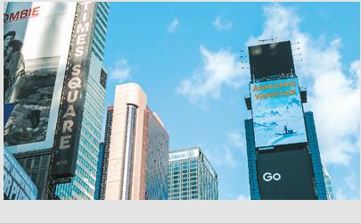 以《魅力长江》为题的7部系列宣传片,12月9日在美国纽约时报广场“中国屏”亮相。这7部宣传片分别以“绿色经济”“生态净土”“多彩民族”“文化传承”“田园经济”“环保城市”和“栖息乐土”为主题,从不同侧面展现中国长江及沿岸地区的生机和活力。图为《魅力长江》系列宣传片在“中国屏”上播放。