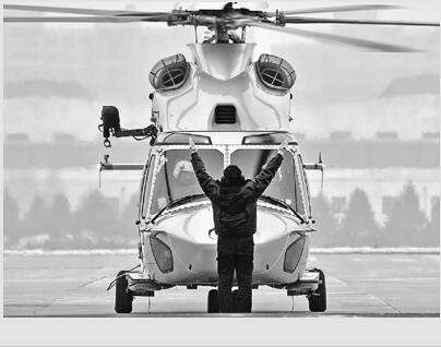 12月20日,地勤人员在指挥AC352型直升机起飞。