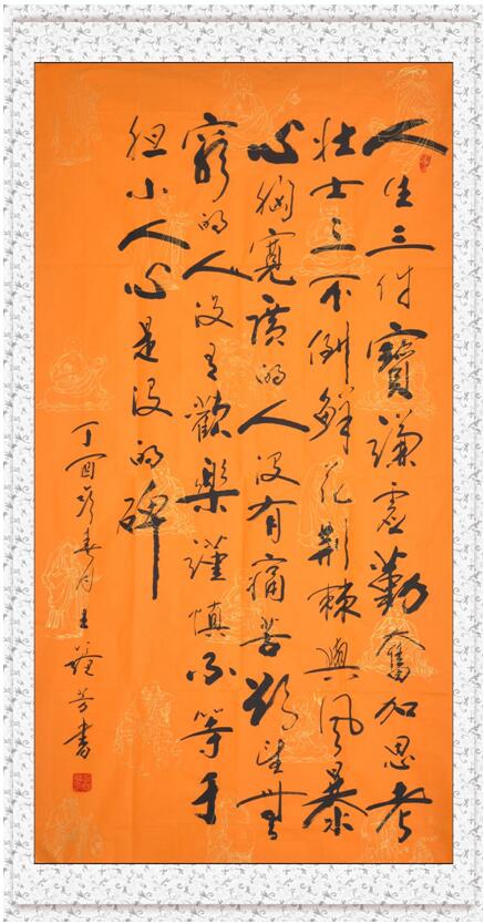 王镜芳、男、汉族,1938年11月生,广东兴宁市人。中国书画函授大学研修班毕业。从事教育41年,高级教师。现在是中国书画家协会、中国文联书画艺术交流中心会员、中国书画艺术家创作中心会员、中国老年书画艺术委员会委员及梅州市书法家协会会员……。现任中国艺术名家研究院副院长、中国艺术学会常务委员、香港特区国际羲之书画院副院长、华夏文艺出版社社长。荣聘南京长江书画院、东坡书画院、翰墨书画院名誉院长,世界华人交流协会名誉理事、西藏自治区硬笔书法家协会艺术顾问、翰墨书画院院士、画圣吴道子艺术馆、中国书画研究会理事、中国艺术促进会艺术顾问、中国书法美术艺术创作中心终身荣誉教授。