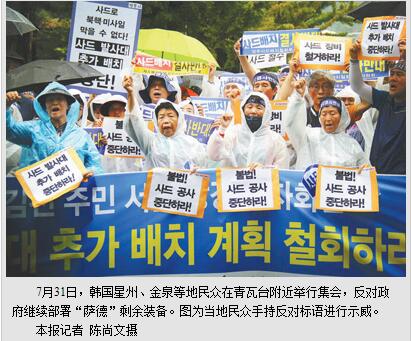 7月30日,韩国政府决定临时部署剩余4辆“萨德”发射车的消息一经公布,便激起了星州及附近民众极其强烈的反对。30日下午,200余名当地居民在“萨德”部署地附近的韶成里村抗议,谴责政府决定过于仓促,要求立即撤回部署决定。