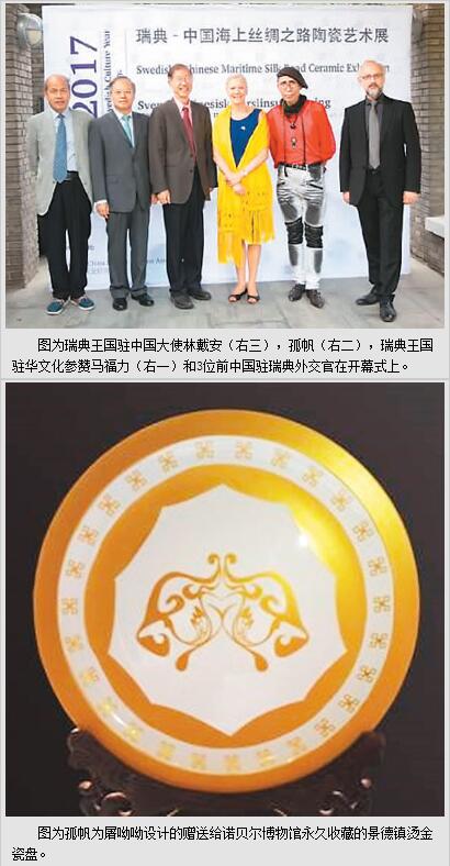 作为瑞典文化年的重要项目,这次展览重点展示中国传统瓷器的精湛造诣和瑞典现代瓷器艺术的异域风情。其中瑞典文化年文化特使、国际著名时尚大师孤帆(Galo)先生(瑞典籍华人)创作的瓷器作品在此次展览中集中展出。他曾为中国的诺贝尔奖获得者莫言、屠呦呦设计参加诺贝尔颁奖盛典的服饰和赠送瑞典王室的礼物。