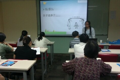 家长们正在与何老师交流各自在家庭教育过程中存在的困惑,气氛甚欢