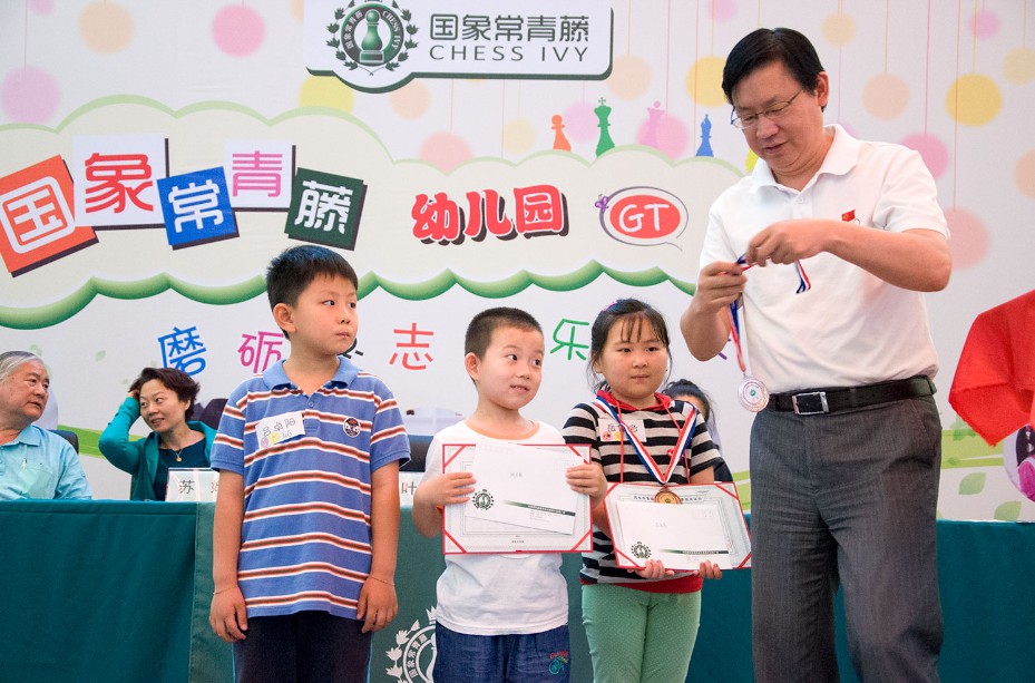 在活动圆满结束之际,国象常青藤北京棋馆,也历经了4个月的试运营考验步入正轨,整个GT赛就是棋馆开业庆典的一部分。棋馆针对学前孩子,研发了独具特色的幼儿GT课程。该课程采用外教纯英语教学,通过英文故事和趣味游戏,培养孩子兴趣,教会孩子下棋,受到众多家长的欢迎。常青藤创始人李晓萍女士,中国国际象棋协会秘书长、国际象棋国家队总教练叶江川先生发表了讲话,叶江川先生还特别提到了国象常青藤在国际象棋于中国的普及上的突出贡献。中国教育科学院早教所所长苏婧女士,以及朝阳棋院资深国际象棋教师何凤岐先生也来到现场表示祝贺。