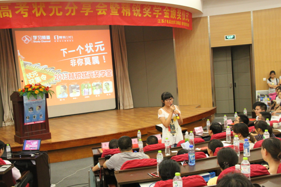 2013年8月14日在东南大学逸夫科技馆报告厅,南京精锐教育联合江苏省广播电视总台学习频道就举行了一场“对话状元——2013中高考状元分享会”活动。2013年江苏省高考文科状元龚甜同学、南京市中考状元魏一凡同学等应邀参加了颁奖活动和学习分享会。