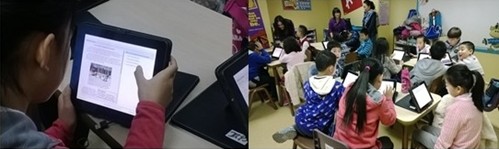 图:瑞思学员在课堂上使用PAD做练习、考试,与老师互动