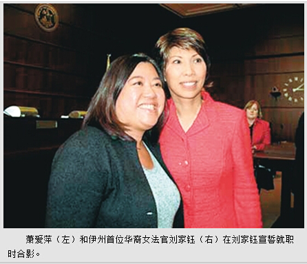 美国《星岛日报》报道,曾任芝加哥亚裔律师协会会长的萧爱萍日前宣布竞选芝加哥第一区区长公职。萧爱萍希望多些亚裔从政,让亚裔小区的诉求和心声让立法者听见。她表示芝加哥面对很多难题,尤其是巨大的财政预算问题,需要全新的视角和看法。