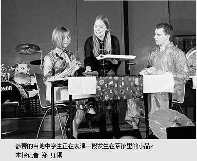 比赛强调创意,注重让学生发挥创造力,体会学习汉语的乐趣。伊本比伦歌德文理中学用汉语演出的小品《拔苗助长》向德国观众介绍了一个中国成语故事,学生们还不忘在节目的最后说,“我们也有自己的成长规律,请老师和家长们不要拔苗助长。”波鸿海因里希·伯尔综合学校的小品,讲述在妈妈的逼迫下参加课外辅导班而不堪重负的学生如何度过了周六的一天。