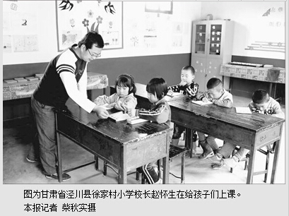 冬日的操场上,草已枯黄。旁边的两排平房就是校舍,而其中一排房子早已空置下来。虽然是上课时间,却只能听到几个孩子稀稀落落的读书声。在这个地处甘肃省平凉市泾川县的徐家村小学,两名教师、12个学生,就构成了学校的全部。像这样规模小、人数少的村办小学,被人们形象地称为“麻雀学校”。据甘肃省教育厅厅长王嘉毅介绍,在甘肃省,10名学生及以下的学校有3100余所,而100人以下的有9104所。