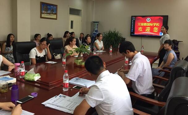 7月22日清晨七点多陆续来了许多老师,她们是来应聘的。艾瑞德国际学校用红地毯迎接来的老师们。