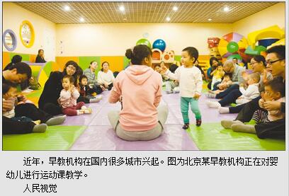“早教的目的是为孩子营造合适的成长环境,为孩子创造与自然和人互动的机会,从而促进孩子全面成长,不是提前学习知识,也不是提前训练各种技能。但偏偏就是这些技能培训看得见、摸得着,能吸引家长掏钱,所以不少教育机构迎合需求,推出了并不适合孩子的课程。”南京师范大学教育科学学院儿童发展与家庭教育研究中心副主任殷飞建议,早教应该根据婴幼儿的身心特点,以家庭为中心,在日常生活中进行。