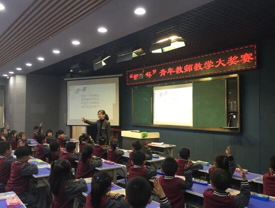 (图为:一年四班数学老师邓杨教学课进行时)