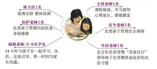 灵商快乐成长营,特设营地总指挥、主讲老师、班主任、助教(助教老师定期与你联系,实时关注孩子在营地的成长)、专业拓展教练、摄像、摄影师、医疗团队等20名后勤老师!